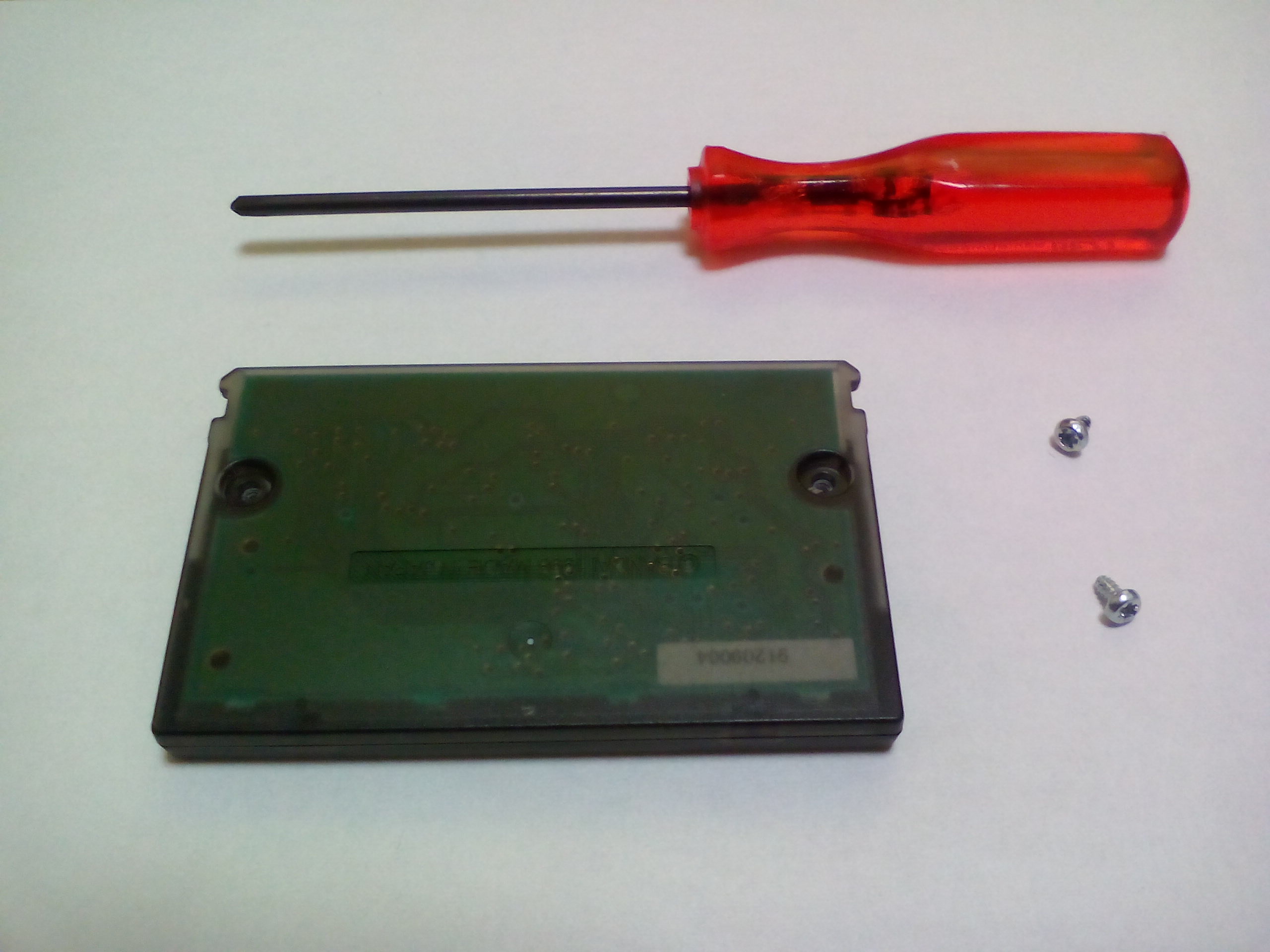 ワンダースワンのカートリッジです。これの裏側にネジがあるので、まずはネジを緩めて外しましょう。