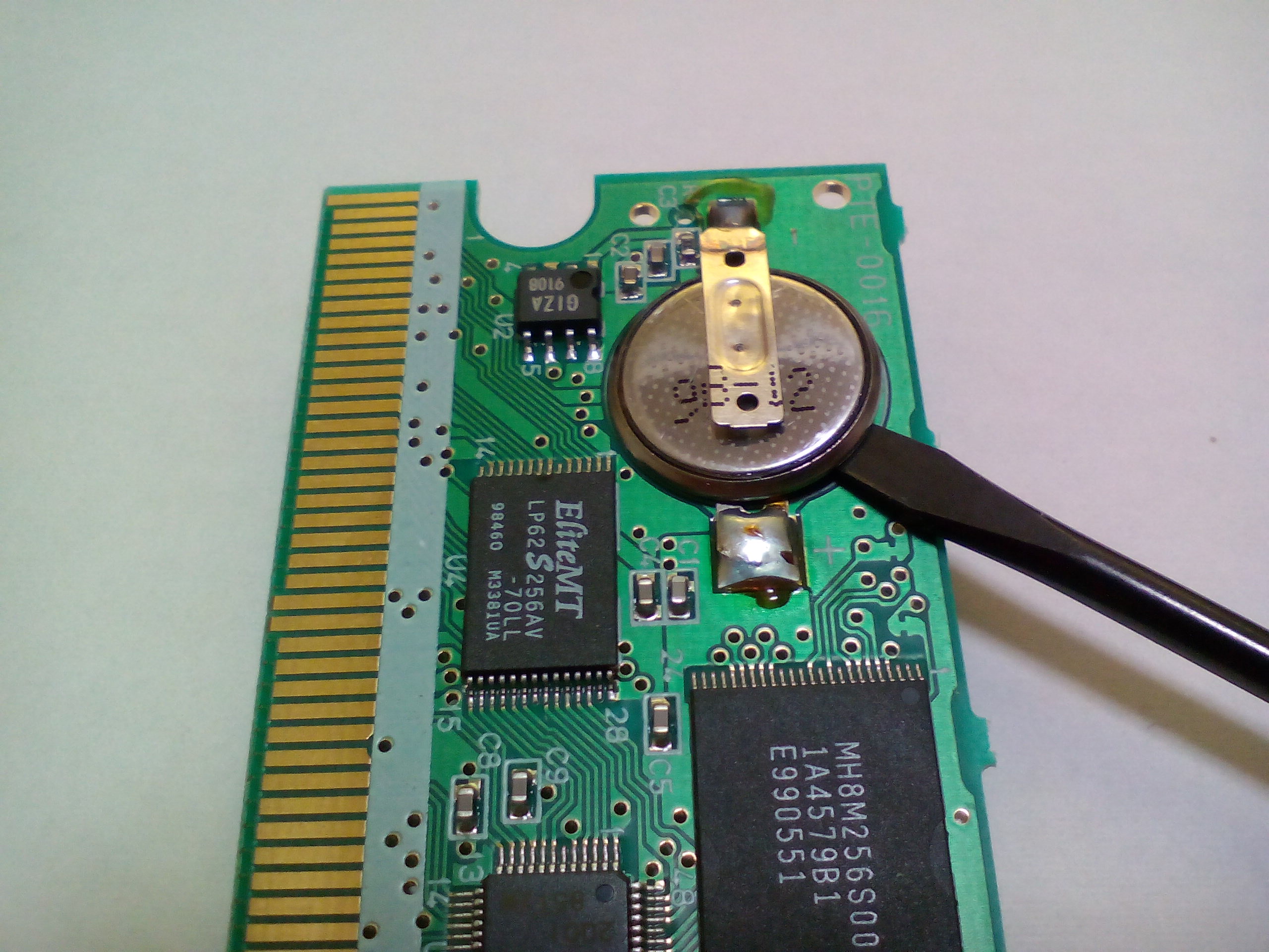 ちなみに端子付きのボタン電池を購入し、端子と電池を剥がすのではなく、端子のハンダ部分を溶かして外して、端子付きボタン電池を取り付ける方法もあります。